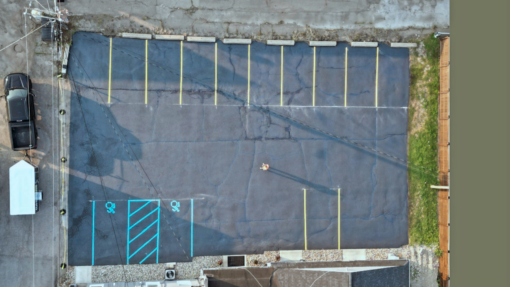 After we sealcoat, all parking lines must be repainted for maximum visibility. We use ADA Compliant colors for all of our handicapped spaces, and a vibrant yellow for parking. Whether a parking lot needs a new layout or just a re-stripe, our crews are ready.